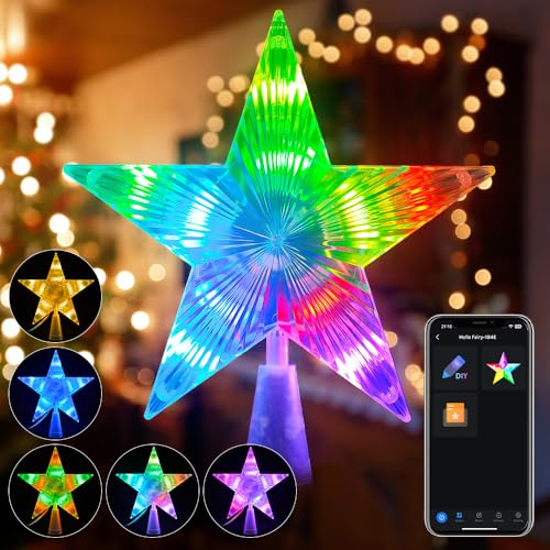 SIXVALA 7" Christmas Star Tree Topper Lighted, Smart App & Remote Control RGB Color Changing Star Tree Topper with DIY, Scene Mode, Sync with Music, Timer for Xmas Tree Decor, USB Plug in/Wire 16.4Ft
