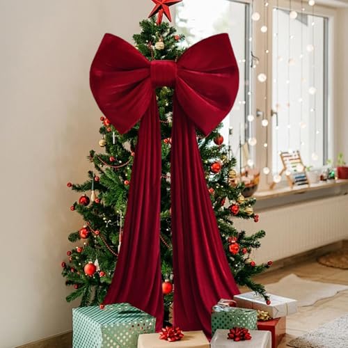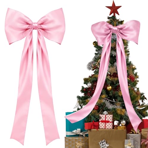 Christmas Decorations, 45.28 脳17.72 inch Giant Red Stain Bow for Christmas Tree - Large Christmas Tree Topper Bow Ornament - Wreath Bows for Indoor Outdoor Home Holiday Weeding Party Decor (Pink)