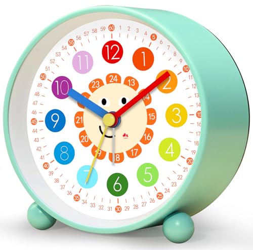 FLOITTUY Super Silent 5 Colors Alarm Clock,Beep Wake Round Alarm Clock with Night Light,Battery Operated,Easy Set,Simple & Retro for Desk, Bedroom and Home Decoration(Creamy White)