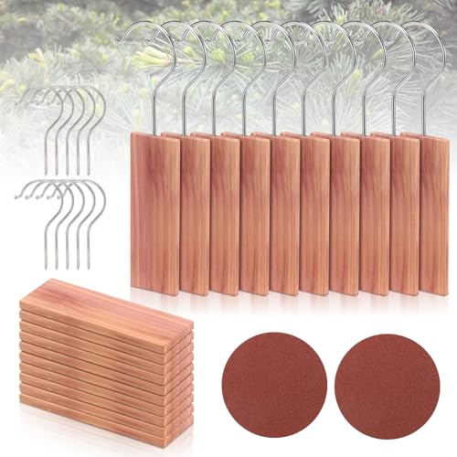 Cedar Blocks for Clothes Storage, 24 Pack Planks w Metal Hooks, 100% Cedar Wood for Closets, Scented Cedarwood Hang Ups Balls Hanger, Cedarwood Chips for Closets Drawers Moth Ball Alternative (1 count (Pack of 24))