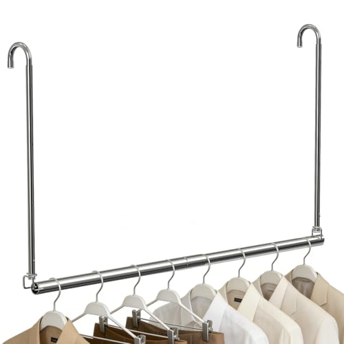 Hanging Closet Rod, Adjustable Height & Width Closet Rods for Hang ing Clothes-Closet Extender Rod Space-Maximizing Design Suitable for Hanging and Drying Clothes, Silver