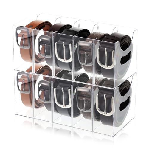 Rhino Valley Belt Organizer, 7 Compartments Belt Storage Holder, Acrylic Clear Display Case for Closet, Storage Container for Tie and Bow Tie