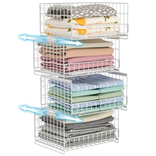 EASEVE Closet Organizers and Storage Bins for Clothes - 12 Cell Drawers Organizer Grid Storage Box for Jeans Pants Sweater T-shirts, Wardrobe Shelf Dividers Closets Organization (4Pcs, Grey)