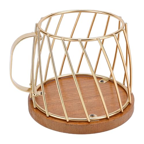 MYTOAU Coffee Pod Holder with Lid, Large Capacity K Cup Holder and Rustic Wooden Base, Black Wire Storage Basket for Kitchen Countertop and Coffee Bar Organizer