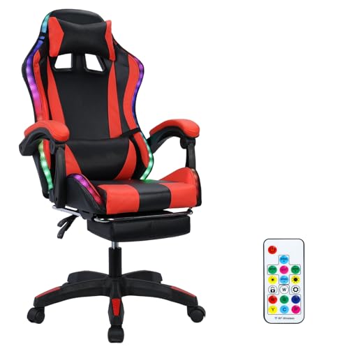 GTRACING Gaming Chair, Computer Chair with Footrest and Lumbar Support, Height Adjustable Gaming Chair with 360掳-Swivel Seat and Headrest for Office or Gaming (Red)