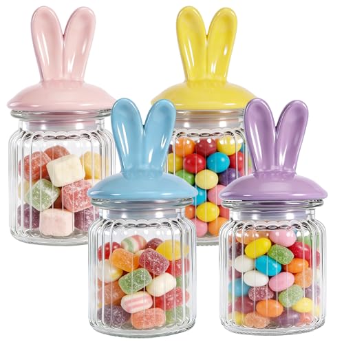 Alipis Easter Glass Jars Food Sealing Jars with Alloy Bunny Ear Lid, Rabbit Shape Clear Candy Jar for Chocolate Sweets
