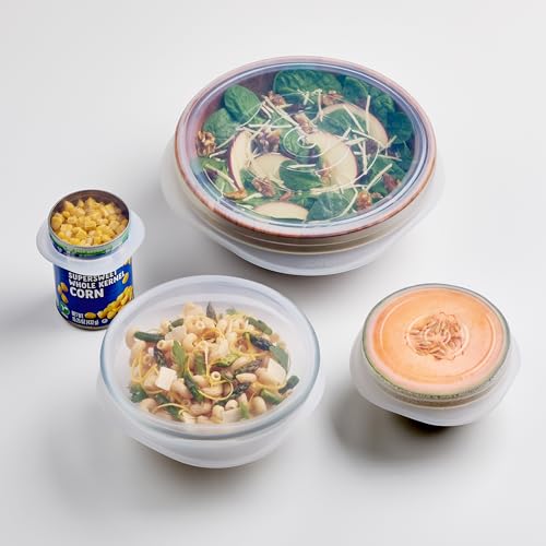 Goodful Universal Silicone Lids for Pots and Pans, Heat Safe, Reusable Suction Seal Covers for Bowls, Pots, Cups- Food Grade, Dishwasher Safe, 3 Piece, Gray, Green and Sage