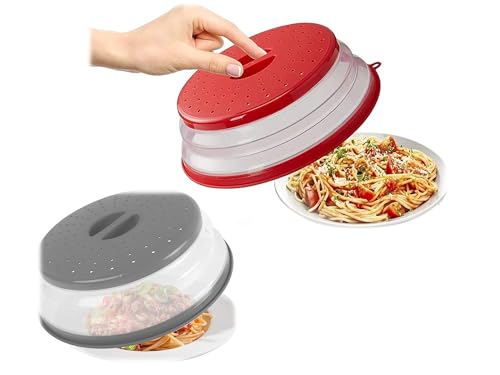 Microwave Splatter Cover Glass Cover Guard Lid with Collapsible Silicone for Food Pot Plate Cover 9.8 inch Light Grey
