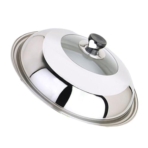 YOSUKATA Wok Lid 32.5 cm for 34 cm Wok - Premium Stainless Pan Cover with Tempered Glass Insert Steam Holes and Ergonomic Handle - Durable Accessories - Dishwasher-Safe Lid - Chees Melting Dome