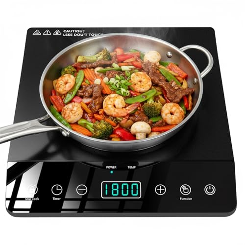 Electric Hot Plate,Nuopuplai Single Countertop Burner Portable Ceramic Cooktop For Cooking Ultra-thin Electric Stove Infrared Cooker,24-Hour Timer Child Safety Lock,Compatible With All Cookware