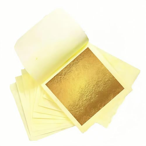 dshyuauoci 50 Sheets Gold Leaf, Premium 24K Gold Foil Sheets 3.15脳3.15 Inches Craft Art Decoration Perfect for Decorating Cakes Art DIY Projects Nail Art Phone Cases Photo Frames Gold Plating