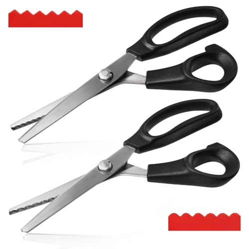 Fabric Pinking Shears, Professional Stainless Steel Handled Scissors, Black, 18mm Scalloped Blade