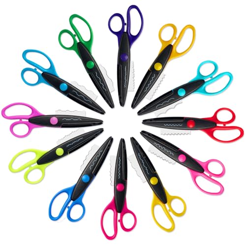 LumaKid 12-Pack Kids Safety Craft Scissors, 6.5-Inch Decorative Edge, Colorful Handles for Arts & Crafts, Scrapbooking, School Projects, DIY Paper Cutting, Large & Small Handles (L/S)