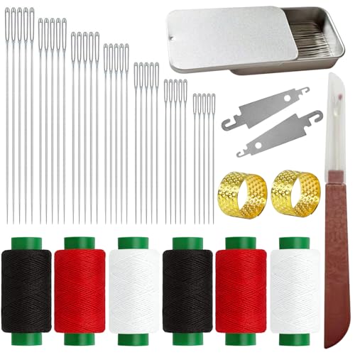 ZXIIXZ 54 Pcs Upholstery Repair Kit, Leather Sewing Kit Heavy Duty with 8 Pcs Waxed Thread, Awl, Leather Needles for Hand Stitching, Upholstery Sewing Kit for Canvas, Shoes, Carpet, Sofa Repairing