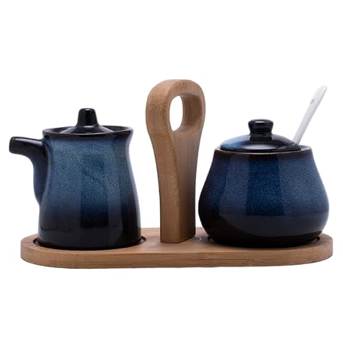 Kook Sugar and Creamer Set, 3 Piece, Pitcher, Sugar Bowl with Lid and Spoon, Sweetener Holder (Navy)