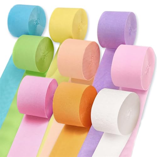 Faylapa Crepe Paper Streamers - 10 Rolls, 10 Colors, 82ft Rainbow Streamers for Birthday, Wedding, Photo Booth Backdrop, Holiday Fiesta Decorations