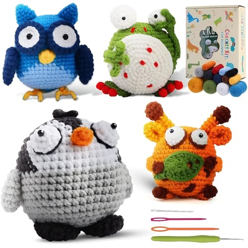 PP OPOUNT Beginner Crochet Kit, Crochet Starter Kit for Adults and Kids, Complete Crochet Set to Make 4 PCS Animals, Learn to Crochet with Step-by-Step Instruction and Video Tutorial (Patent Product)