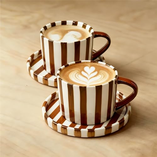 ionEgg Porcelain Coffee Cup with Saucer 220ml/7.3oz for Cappuccino, Latte, and Tea, White, Set of 2