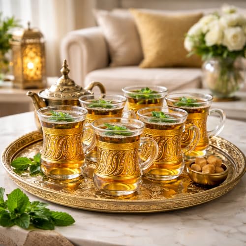 GuangYang Fine Porcelain 6 oz White Tea Cups Set of 6, White with Gold Trim, Good Size for Tea, Cappuccino, Flat White Coffee