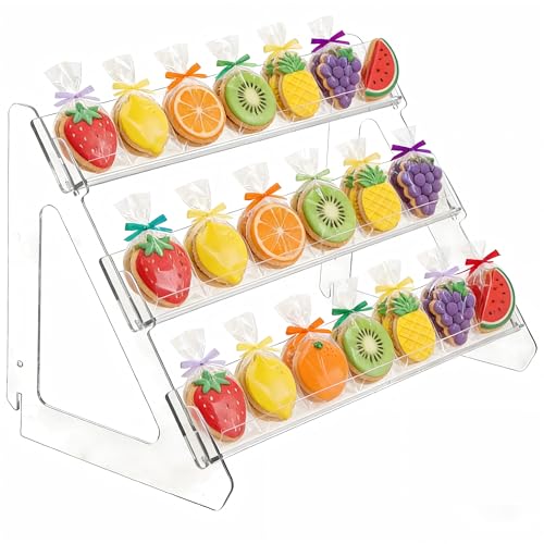 3-Tier Cookie Display Stand for Vendors,Cookie Stand for Market Booths, Craft Fairs & Events,Clear Acrylic Tiered Cookie Display for Muffins & Pastries