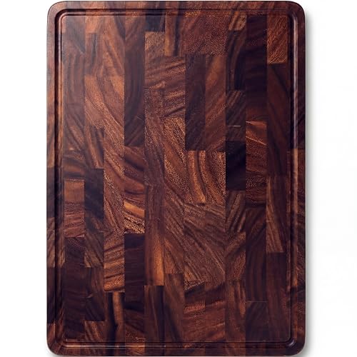 THETCHRY Cutting Boards for Kitchen, Checkered Cutting Board Upgraded, Acacia Wood Chopping Board with Juice Grooves & Handles, Large Butcher Block Serving Tray with Gift Box, 17" x 12" x 0.8"