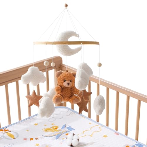Baby Mobile for Crib, DIY Wooden Baby Crib Mobile Set with Bamboo Ring, Beads and Cotton Thread for Nursery Decor Gifts