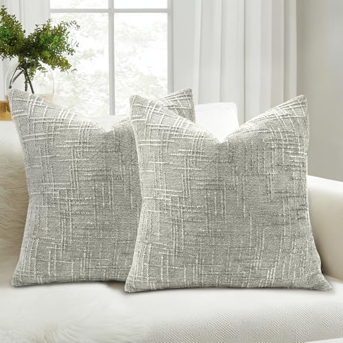 YCOLL Pillow Covers Set of 4, Modern Sofa Throw Pillow Cover, Decorative Outdoor Linen Fabric Pillow Case for Couch Bed Car (Grey, 18x18 inch/45x45cm,Set of 4)