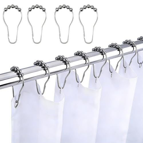 40Pcs Metal Curtain Track Hooks S Shaped Small Curtain Hooks and 40Pcs Gliders Set, Stainless Steel Shower Curtain Hooks, Plastic Curtain Rail Gliders and Pin Hooks, for Window Door Shower Curtains.