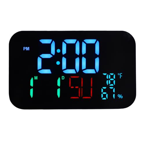 Raynic Digital Clock, 11.5" Large Display Digital Wall Clock, Adjustable Brightness Calendar Clock with Day and Date, Indoor Temperature, Snooze,12/24H, DST for Home, Office, Elderly (White Font)