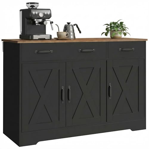 HOMCOM Sideboard Buffet Cabinet, 43" Farmhouse Kitchen Storage Cabinet with 3 Barn Doors, 2 Drawers, 2 Adjustable Shelves, Coffee Bar Station, TV Stand for TVs up to 50 Inch, Black