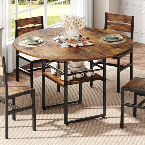 Dinning Room Tables for 4, Round Dining Table Set with Storage, 47 Inch Circle Kitchen Table High Top