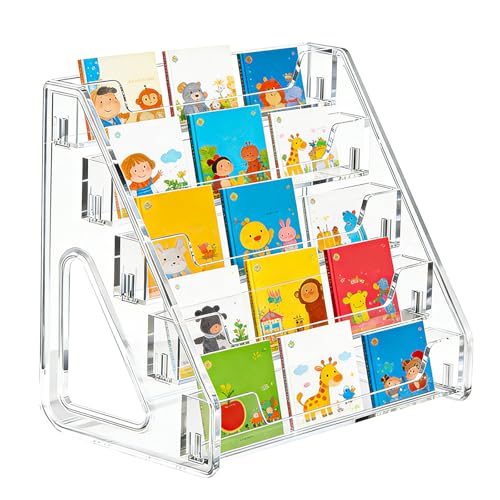 6 pcs Clear Acrylic Book Stand Set Transparent Display Easel Tablet Holder Multi-Functional Easel Acryliy Ledge Shelf Bookshelf for Displaying Picture Albums Books Music Sheets Notebooks Artworks CDs