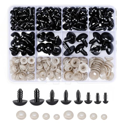 ASTARON 300pcs Safety Eyes and Washers for Craft, 6-12mm Plastic Crochet Eyes for Stuffed Animals Doll Making, Black