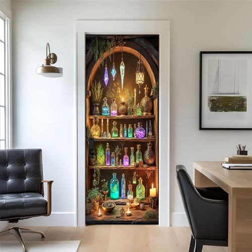 FLFK 3D Door Mural - Door Sticker Peel and Stick, Removable Self-Adhesive Scenic Door Wallpaper for Home Decor, 36"W x 80"L, Set of 2 Sheets