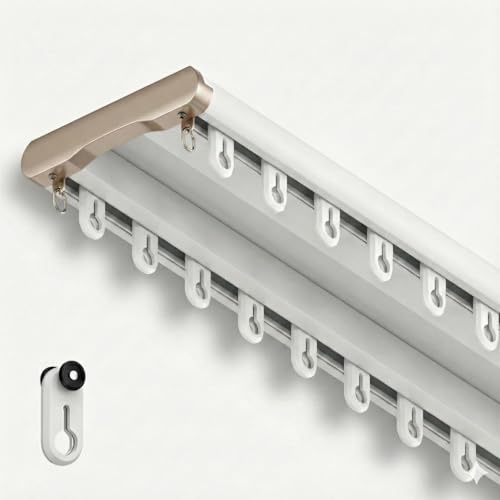 Double Curtain Rod, White Wrap Around Blackout Dual Curtain Rods for Windows 30 to 56 inch, Adjustable Heavy Duty Spliced Room Darkening Window Treatment Rods, All Metal, Aluminium Bracket