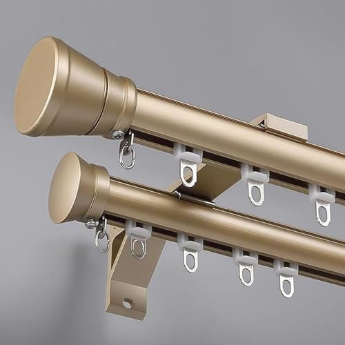 Double Curtain Rods 72 to 144 Inches(3-6 Feet) with Solid Aluminum Alloy Brackets, 1鈥 Front and 5/8鈥 Back Telescoping Drapery Rod for Windows, Heavy Duty Decorative Curtain Rods, Warm Gold
