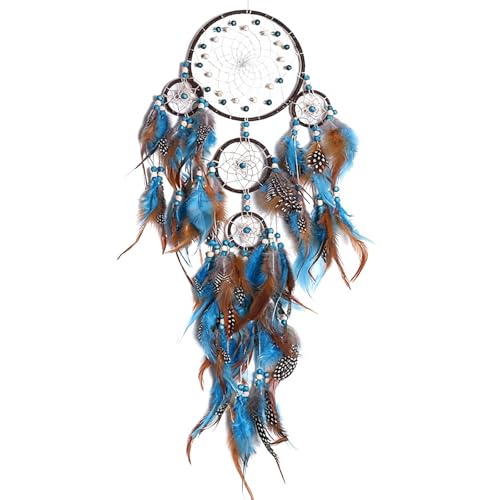 LOMOHOO Dream Catcher Tree of Life Double Circle Handmade Traditional Feather Dreamcatcher Wall Art Hanging Boho Bedroom Decor Bohemian Sitting Room Home Decoration Ornament Craft