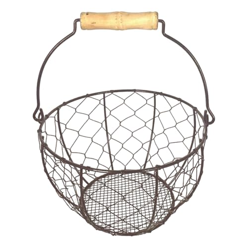 CVHOMEDECO. Metal Wire Mini Egg Baskets Rust Gathering Baskets with Wooden Handle Country Vintage Style Storage Baskets. Set of 2