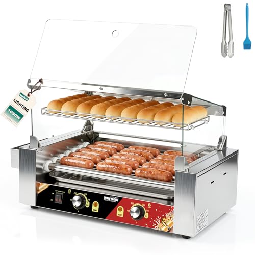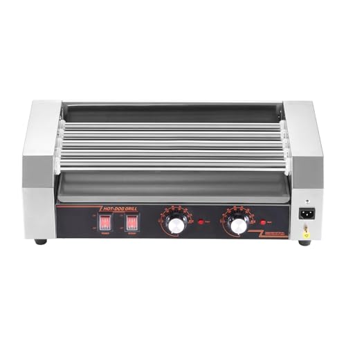 Uargd Hot Dog Roller Machine, 12 Sausage Capacity with 5 Rollers, Stainless Steel Grill Cooker, 750W with Dual Temperature Control, Removable Oil Tray, Ideal for Home, Parties, and Commercial Use