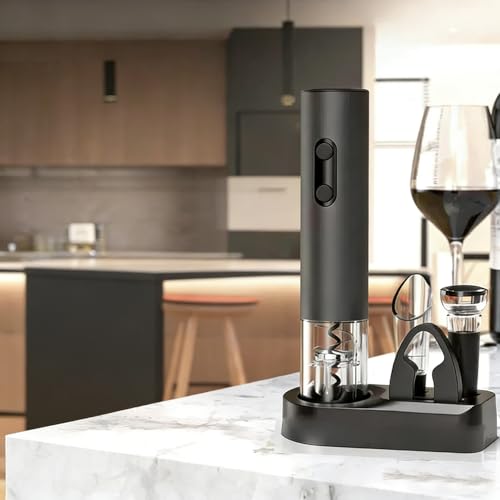 One-Touch Electric Wine Opener Set - Rechargeable Automatic Wine Opener - Stainless Steel Electric Bottle Opener with Foil Cutter, Aerator, Pourer, Stopper