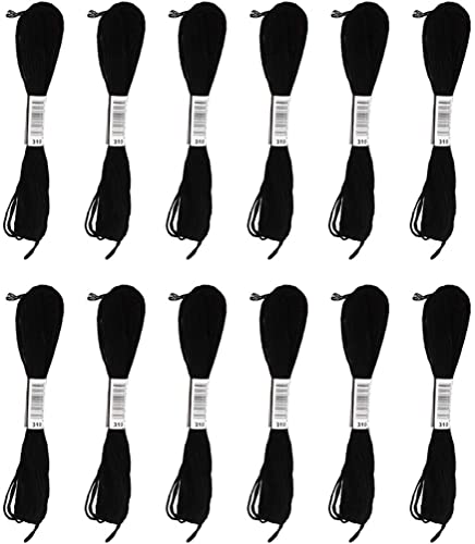 Six Strand Cross Stitch Embroidery Floss Thread 8.7 Yards - Black 12Pcs (Yellow)