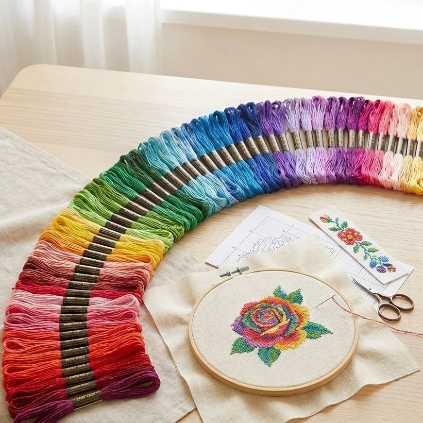 CABODYALS 18 Skeins 157 Yards Rainbow Color Cross Stitch Floss Embroidery String 6 Strands Colorful Polyester Friendship Bracelet Needlepoint Yarn Thread for Sewing Bracelet Making Knitting Art Craft