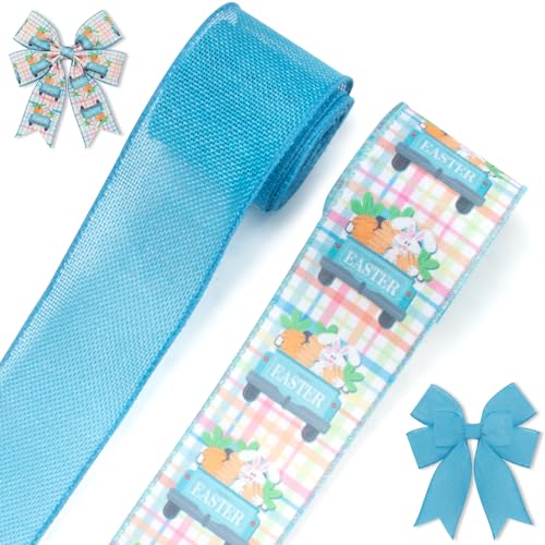 1 Rolls Checker Ribbon, 3/8 Inch x 50 Yards Checkered Ribbon, Woven Edge Check Ribbons, Polyester Woven Edge Ribbons for Gift Wrapping, Hair Bows, Sewing (Blue and White)