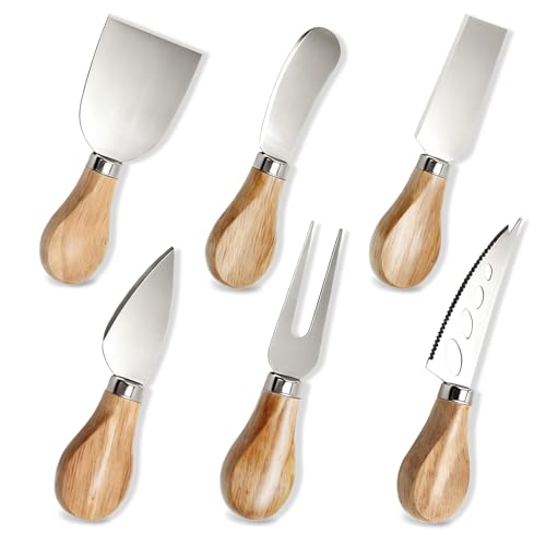 Cheese Knives Set with Wooden Handle, Mini Steel Stainless Cheese Knife Set for Charcuterie and Cheese Spread Mini Serving Tongs Spoons Forks Toothpick Flags for Party Wedding Christmas (Option 1)