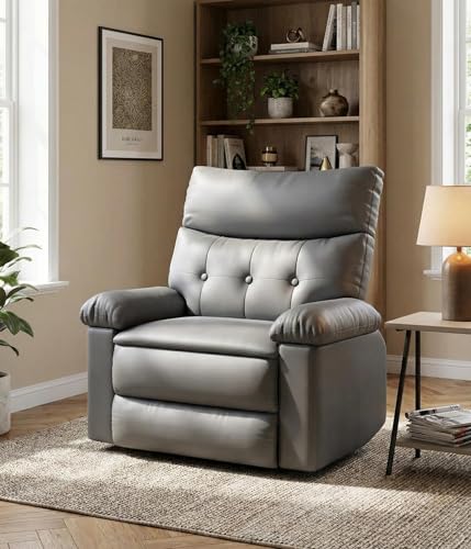 Recliner Chair for Adults Manual Recliner with Oversized 22 Inch Seat, PU Leather Lazy Chair with Thick Sponge Padding for Living Room and Bedroom Comfort,Brown