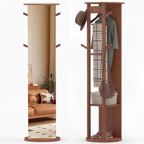 Arched Walnut Floor Full Length Mirror with Stand, 63"X24" Farmhouse Oversized Stand Up Mirrors,Large Wall Mirrors for Bedroom/Living Room/Store, Stand Up or Leaning or Wall Mounted