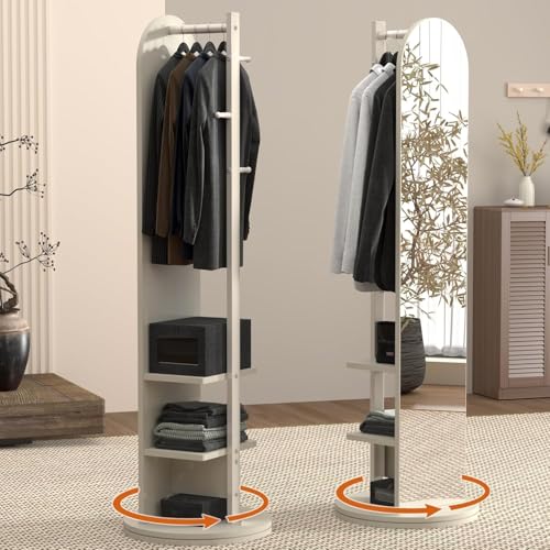 Maeklon Newest 360掳 Swivel Full Length Mirror with Coat Rack, 2-in-1 Freestanding Floor Mirror & Organizer, Solid Full Length Mirrors for Living Room, Bedroom, entryway, Cloakroom, White