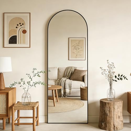GLASHOM Arched Full Length Mirror,76" x34" Large Full Body Mirror Standing,Black Mirror Full Length Floor Mirror with Stand Hanging or Leaning Against Wall Arched-Top Mirror for Living Room
