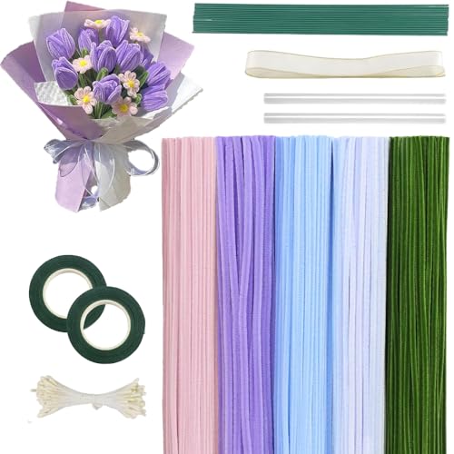 550 Pcs Pipe Cleaners Craft, 7 Colors Chenille Stems Pipe Cleaners Flower Kit, Pipe Cleaner Bulk Flower Making Crafts Kit with Supplies, Instructions for Festival Home Decor