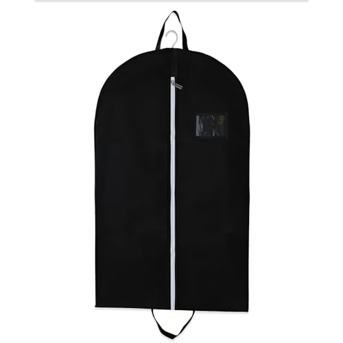 TranRantic 43 Inch Dance Garment Bag, Waterproof Travel Garment Bag with 4 Clear Zipper Pockets (3 Front + 1 Back) | Foldable Design for Suits & Performance Outfits (Black)